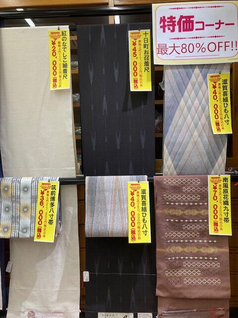 滋賀喜組みひも八寸 上代280,000円(税込み) ⇒ 表地赤札 40,000円(税込み) 3本限定!